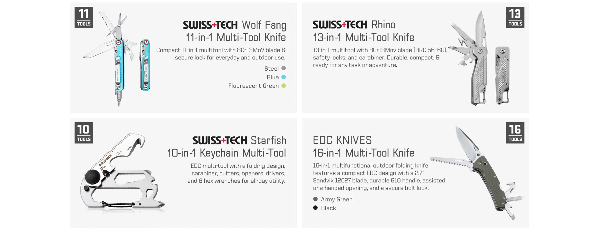 Produk utama: Pisau, multi-alat, sumbu, perlengkapan luar ruangan, Aksesori